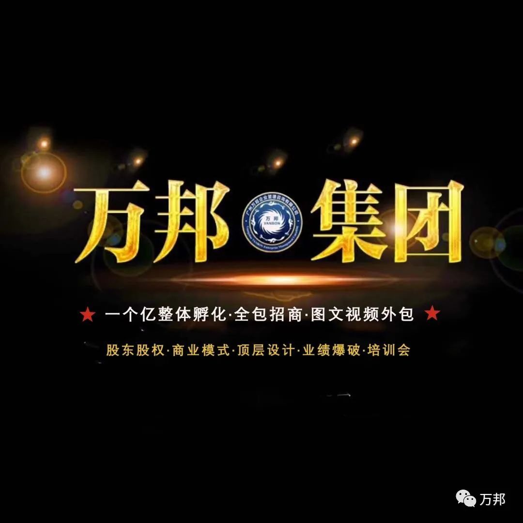 廣州萬邦集團成立于2003年8月,是專注于全包招商,股東股權、商業模式設計、團隊打造、明星晚會等各種最新終端會和終端模式一條龍服務的集團公司。為企業打造全面盈利系統,為企業招商助力賦能!