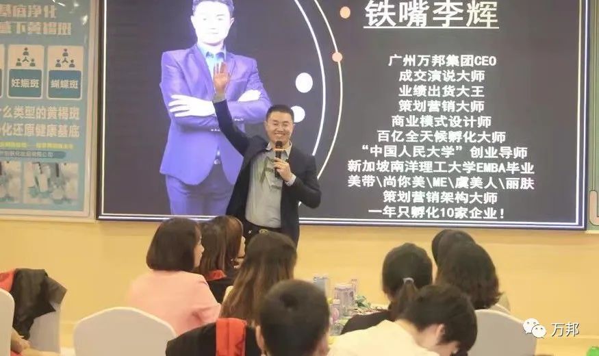 萬邦集團CEO鐵嘴李輝先生上臺為大家講解麗膚瓏荇的商業(yè)模式、市場發(fā)展及本場會議的優(yōu)惠政策,并且把自己的成功經(jīng)驗分享給大家。鐵嘴李輝老師的精彩課程給大家提供了新思路,也讓大家更肯定麗膚瓏荇的未來發(fā)展前景。
