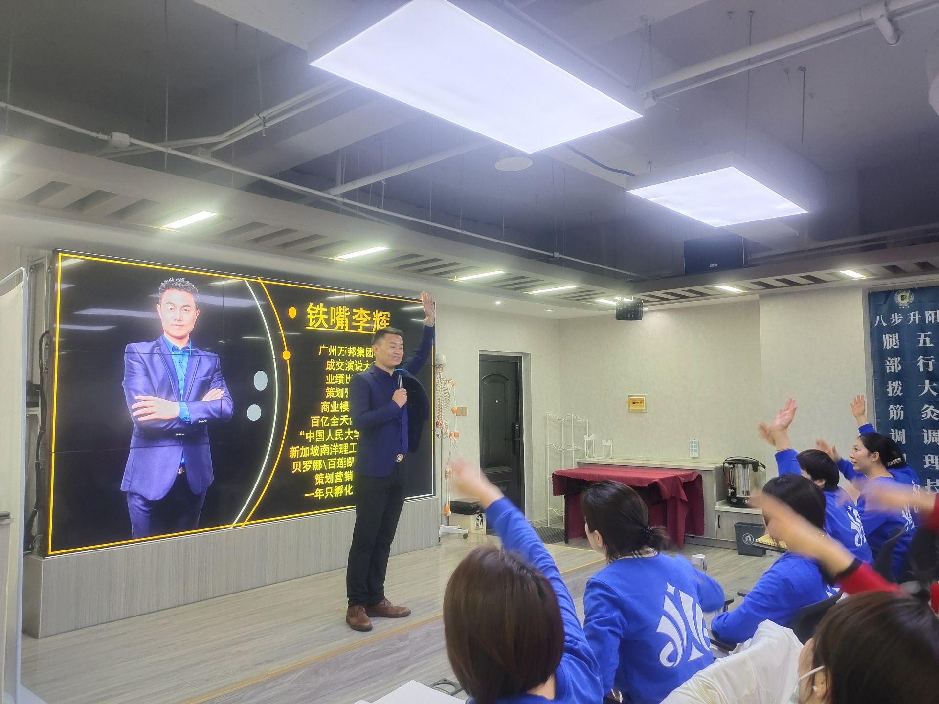 萬邦集團CEO鐵嘴李輝老師上臺分享公司的商業模式、行業現狀及優惠政策,李輝老師將自己多年來的經驗分享給大家,給大家提供思路,并為嬌嶸美業下一年的發展做了戰略規劃,也為公司發展前景做出詳細的戰略布局,為明年發展打下決定性基礎,這讓在場各位對公司發展充滿信心,表示愿意加入公司,與公司并肩前行、共創輝煌。